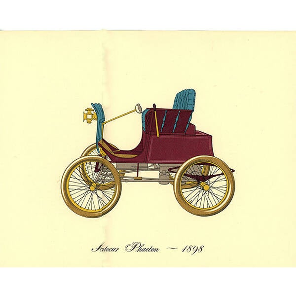 PRINTS WITH MATS AND FRAMES: A reproduction copy of the original lithographs was later completed in 1968 by the publishing company Harry Abrams, Inc. in a reduced size of 13 1/2 x 10 1/2 inches on high quality art paper. These prints are mounted by us in a custom double mat with your choice of frame. Antique car prints with mat and frame are ready for hanging and very desirable for wall decoration in home and office or as a gift. The separate original lithograph print comes in a plastic sleeve and can be saved as a collection of authentic prints.
